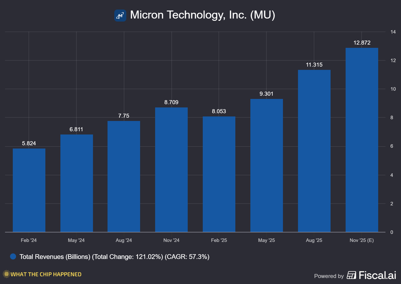 📊 Fiscal 2025 Context: Fiscal 2025 revenue grew nearly 50% to $37.4B, with gross margins expanding 17 percentage points to 41%. Fiscal 2026 consensus calls for $17.27 EPS—if Micron achieves that and trades at 25x earnings, stock price could hit $432 (71% upside potential).