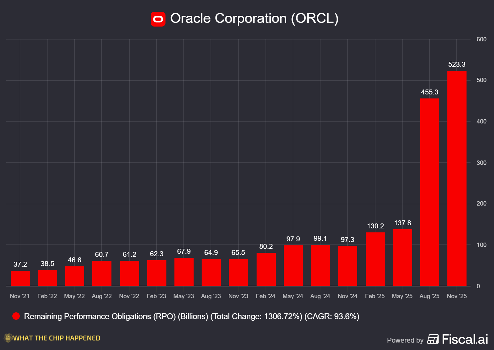 Why AI/Semiconductor Investors Should Care: Oracle’s stumble exposes the inconvenient truth of the AI buildout: chips aren’t the constraint anymore, construction crews, electrical transformers, and cooling systems are. The company’s $523 billion backlog (up 438% YoY) proves demand is real, but execution risk is mounting. Oracle is borrowing tens of billions to build infrastructure for an unprofitable customer in a market where power, labor, and materials are all bottlenecks.